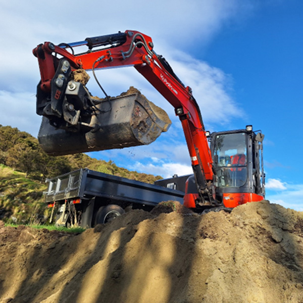 Comprehensive earthmoving for residential and commercial clients, site works, roading, rock excavation and breakage, and carting any kind of aggregates, sand and soil.